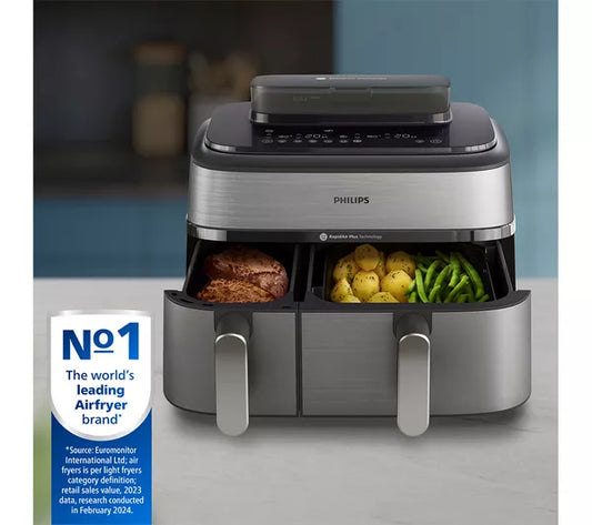 PHILIPS 5000 Series 9L NA555/09 Dual Basket Steam Air Fryer – Silver